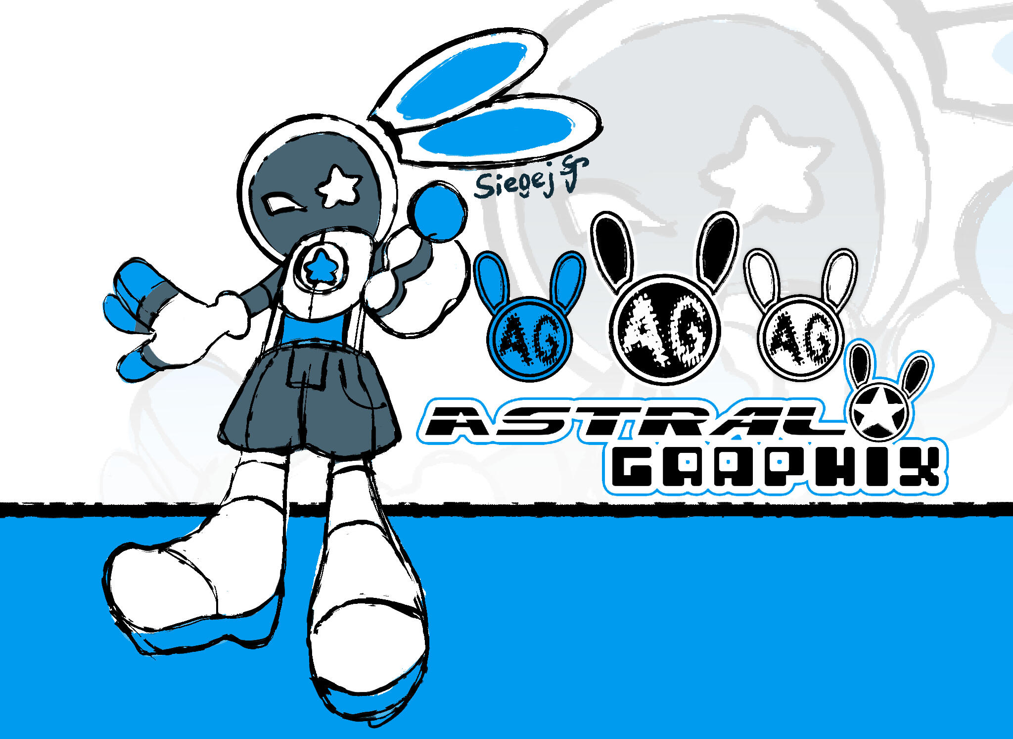 Astral Graphix: Web Assets - I decided to design a fake fashion brand for my final Visual Communication Design Class! This was a massive case study in designing consistent brand elements, iconic characters, eyecatching typography, and apparel/accessory items! Clothing mockups were produced from Printful.