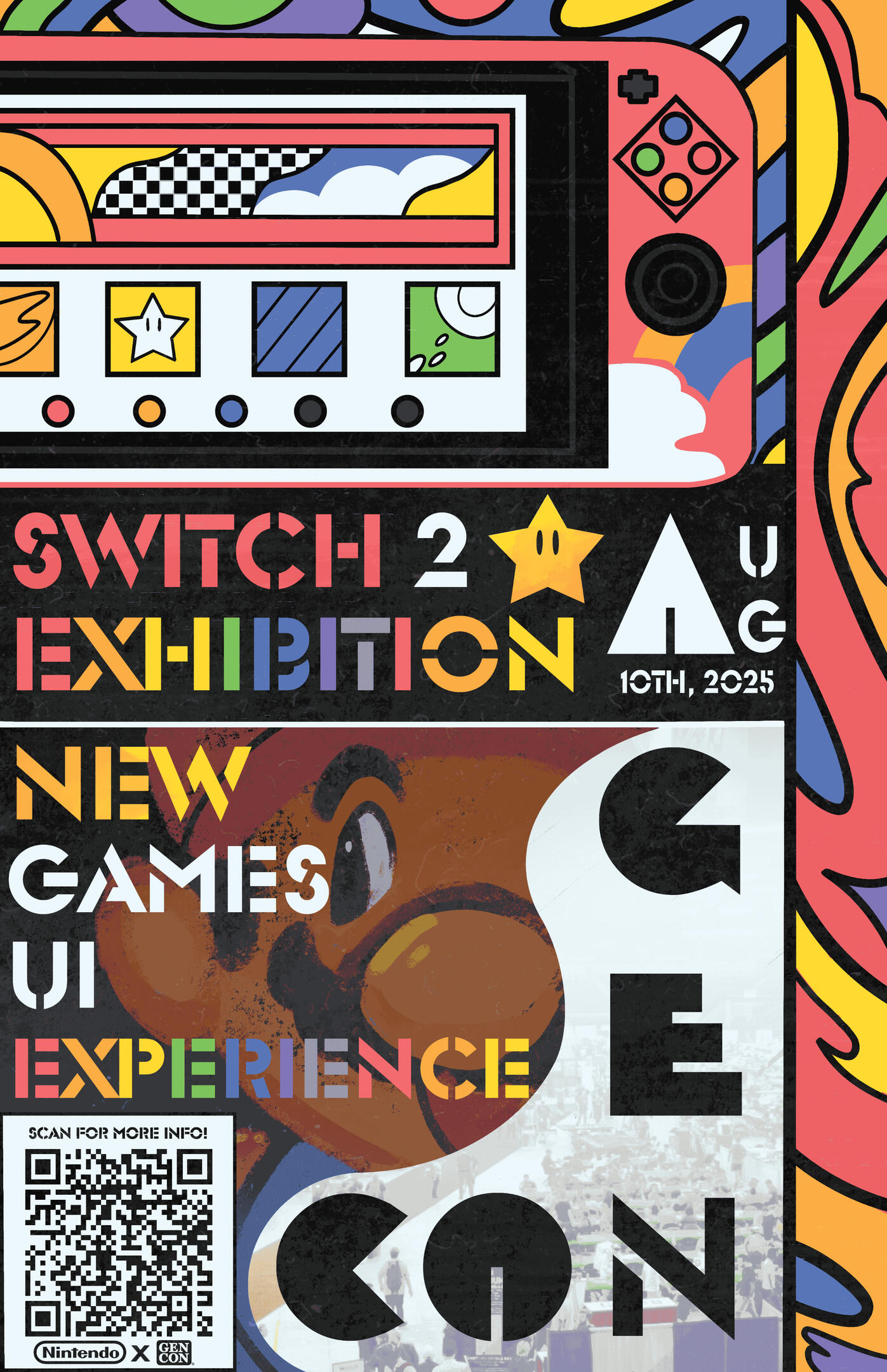 Nintendo X GenCon Mock Poster Assets - I designed these for class assignment where we challenged to create brand assets inspired by Milton Glaser's fonts and artwork! Preceding the teaser announcement of the Nintendo Switch 2, I made these posters in the context of a Switch 2 Exhibition at GenCon. I thought the fun, bright colors of Nintendo's properties and Glaser's design sense complimented each other very well.